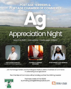 We are excited to announce our Ag Appreciation night coming up on March 6 at Canad Inns Portage. In partnership with the Portage Chamber of Commerce, there will be a guest speaker, Ag Awards presentation and a comedian. FULL DETAILS HERE