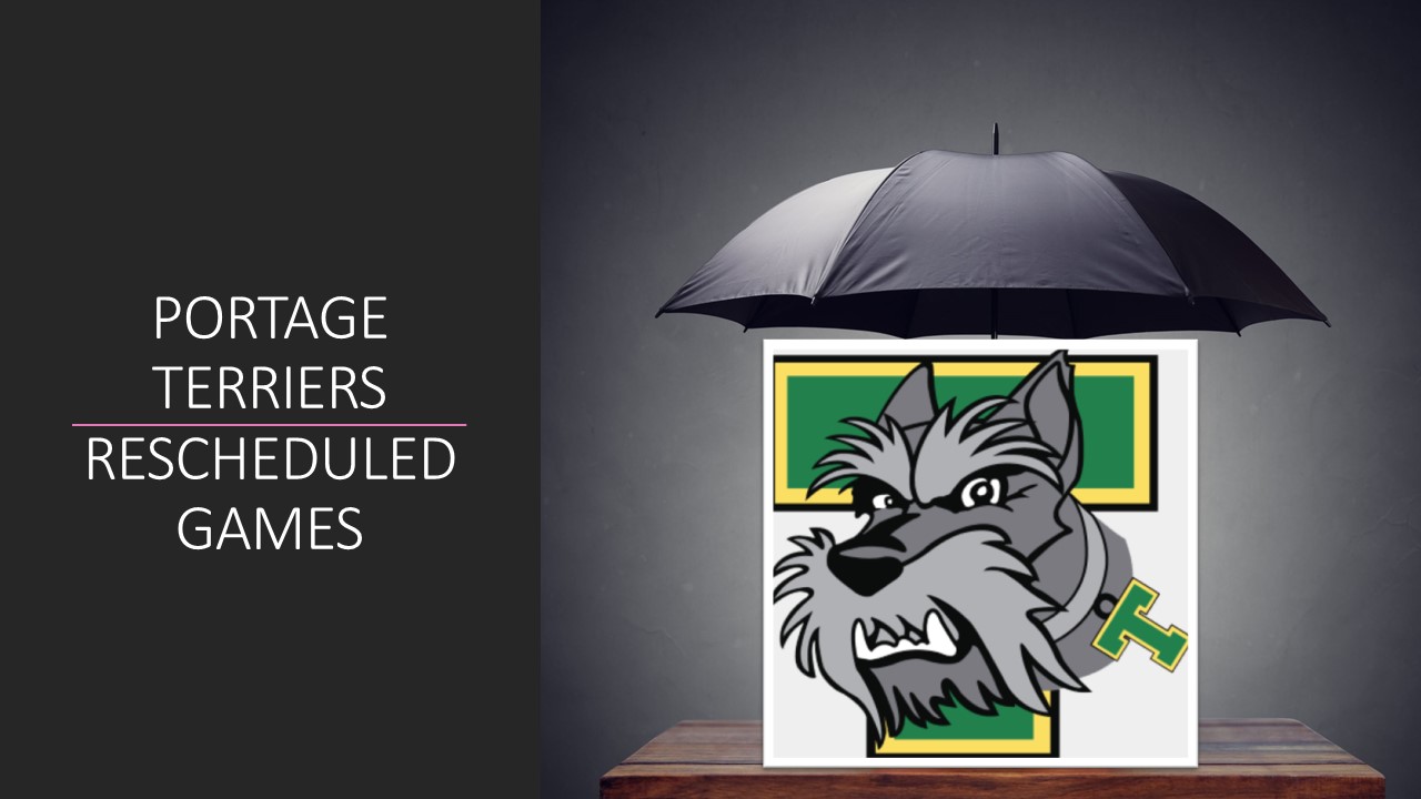 Rescheduled games for the Portage Terriers home games: Sunday October 13: Terriers vs. Swan Valley THURSDAY JANUARY 23 @ 7:30 PM Saturday December 7: Terriers vs. Steelers SUNDAY FEBRUARY 23 @ 6:30 PM